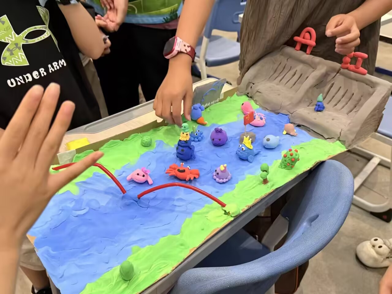 最受歡迎的當(dāng)屬“生物拼圖挑戰(zhàn)賽”環(huán)節(jié)。隊(duì)員們將丹江口水庫(kù)生態(tài)系統(tǒng)拆解成動(dòng)植物卡片,孩子們分組合作,在拼圖板上還原“魚(yú)游水底、鳥(niǎo)翔天際、草木環(huán)繞”的生態(tài)圖景。“原來(lái)小魚(yú)的家需要這么多小伙伴守護(hù)!”完成拼圖的小朋友恍然大悟。隨后,孩子們還在隊(duì)員的指導(dǎo)下,用彩紙折出象征水庫(kù)生靈的小魚(yú)、水鳥(niǎo),貼在“生態(tài)守護(hù)樹(shù)”展板上,寓意共同構(gòu)筑生物多樣性保護(hù)網(wǎng)。