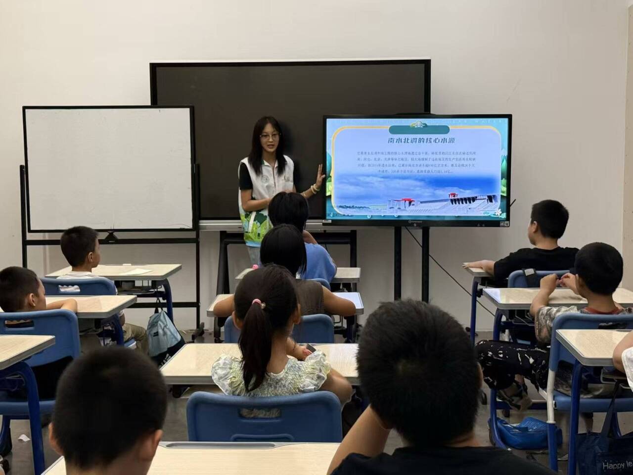 活動(dòng)伊始,隊(duì)員們以一段航拍丹江口水庫(kù)的短片拉開(kāi)序幕——粼粼波光中,水鳥(niǎo)掠過(guò)水面,岸邊草木蔥蘢,瞬間抓住了孩子們的目光。“這片‘亞洲天池’不僅滋養(yǎng)著千萬(wàn)人,還是200多種鳥(niǎo)類(lèi)、50多種魚(yú)類(lèi)的家呢!”隊(duì)員們化身“生態(tài)講解員”,用擬人化的語(yǔ)言介紹著水庫(kù)里的“居民”:會(huì)“跳舞”的大鯢、披著“彩衣”的紅嘴鷗,還有能凈化水質(zhì)的沉水植物。孩子們時(shí)而瞪大眼睛傾聽(tīng),時(shí)而舉手分享自己見(jiàn)過(guò)的動(dòng)植物,現(xiàn)場(chǎng)氣氛熱烈。