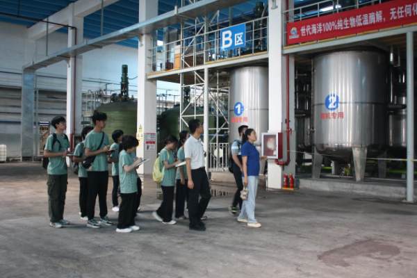 圖為實踐服務團參觀世代海洋生物科技股份有限公司生產車間。賈毅真 供圖