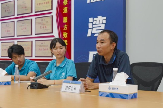 專業授課:深化實踐認知,賦能專業成長在項目部會議室,廣東灣區交通建設投資有限公司工程管理部主管黃志涵(長安大學公路學院2012級研究生)為實踐隊帶來了一場生動的現場教學。他以《獅子洋通道建設管理實踐》為題,結合自身參與重大工程建設的豐富經驗,從“超大跨徑橋梁技術創新”“全生命周期安全管控體系”“智能無人機巡檢技術應用”等多個維度,深入淺出地講解了超級工程的建設管理要點。黃志涵特別介紹到,超大跨橋梁結構帶來許多超常規建設挑戰,在項目開展過程中,各個團隊圍繞350m超高組合索塔、1.5m級超大直徑主纜、新型約束體系及關鍵施工裝備開展全方位技術攻關和創新,形成超大跨橋梁關鍵結構、新型材料、智能裝備等成套技術,助力培育壯大交通新質生產力,引領國家高端橋梁全產業鏈技術進步。同時,項目高度關注安全問題,特別是雙層橋抗火安全問題突出,項目針對性開展了橋梁抗風、雙層桁梁抗火、臨海富水區錨碇耐蝕等關鍵技術攻關,從多角度攻克了超大跨雙層鋼桁梁懸索橋建管養運等技術難題。
