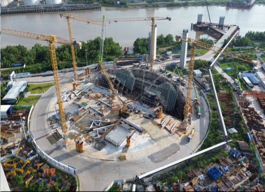 主塔項目現場 直徑達130米的巨型錨碇,堪稱獅子洋大橋的“定海神針”。中交二公局獅子洋通道項目T07標相關工程負責人以“底板施工-填芯混凝土澆筑-錨桿安裝-前錨室預應力張拉”為主線,系統講解了錨碇施工的工藝流程和質量控制要點。登上項目觀景平臺,面對正在施工的巨型錨碇實體,工程師結合現場實際,詳細解析了錨碇系統的核心組成部分:深基坑支護體系、重力式錨碇主體結構以及主纜錨固系統。在講解過程中,工程師特別強調:“作為懸索橋最重要的受力結構之一,錨碇施工必須確保各工序的精度控制,從基坑開挖到混凝土澆筑,從預應力張拉到誤差監測,每個環節的施工偏差都必須嚴格控制在設計允許范圍內,這既是對結構力學理論的完美詮釋,更是工程品質的重要保障。”
