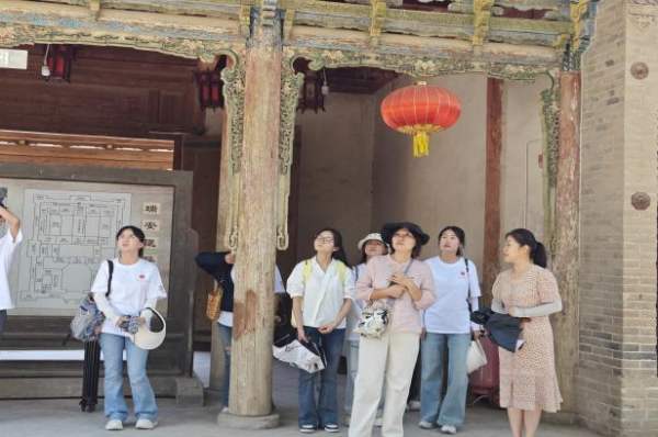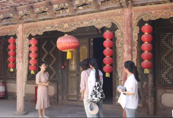 這座具有歷史意義的堡寨,始建于1938年,其建筑風格既深植于北方地理環境的防御需求,又巧妙融入了南方建筑的精妙布局。巍峨厚重的墻體、四角高聳的望樓與箭窗密布的軍事防御設計,盡顯北方邊塞建筑抵御風沙、防范匪患的特質;“一進三院”的院落布局顯示江南民居的對稱美學,門前象征豐收的參天古槐透著南方園林的雅致靈動。整座建筑將西北民居的樸實厚重與江南宅院的精巧結合起來,成為中華傳統建筑藝術因地制宜、南北互鑒的生動見證。作為民族文化的物質載體,瑞安堡讓實踐團成員直觀感受到:中華優秀傳統文化不僅是歷史的積淀,更是在黨和國家的保護傳承中,持續滋養民族精神的源頭活水。