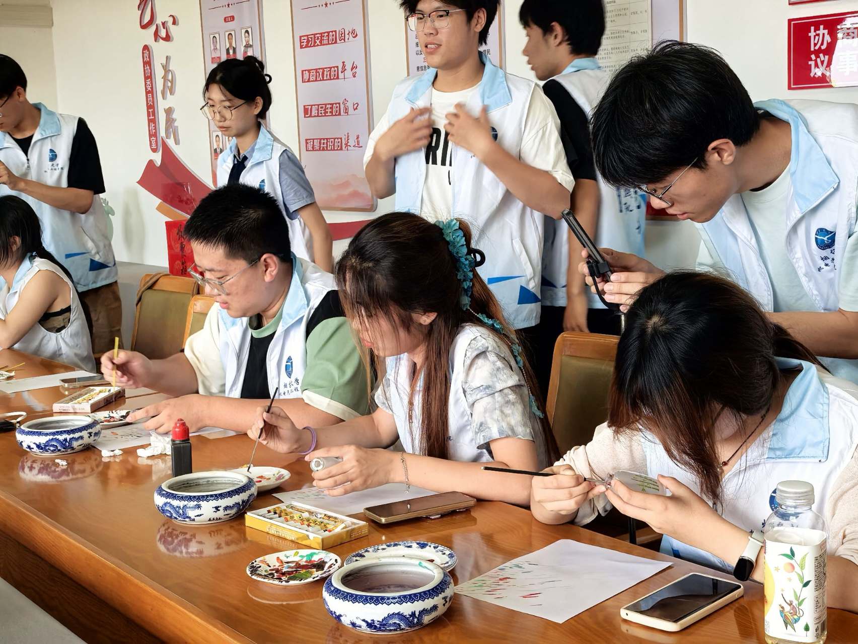 午后時,實踐隊來到了魯派內畫工作室。在這里,師傅手上的畫筆在透明的鼻煙壺身上勾勒出一幅幅生動的畫面,這不僅展示了師傅們深厚的功底,更表現出中華傳統文化的獨特魅力。實踐隊隊員們迫不及待地拿起畫筆,嘗試著在自己的作品上描繪心中所想。雖然手法尚顯生疏,但是這次經歷也讓隊員們更近距離地體會了魯派內畫的魅力與不易。