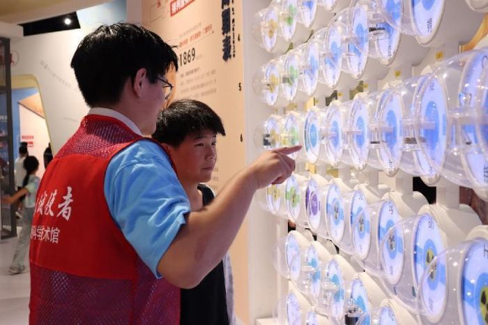 元素周期表展區(qū)前,志愿者拿起一瓶水:“大家看,氫和氧這兩個(gè)‘小伙伴 ’手拉手,就變成了我們每天喝的水。”有孩子講到:“原來(lái)我喝的水里有這么多秘密!”生動(dòng)的講解讓抽象的化學(xué)知識(shí)變得通俗易懂。