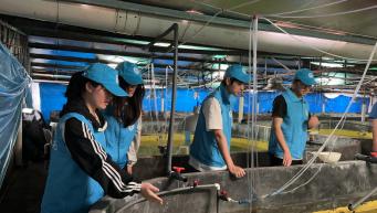 | 圖2為實踐隊在漳州市東山島紳藍海馬養殖場觀察海馬 |