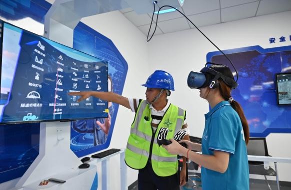 安全是工程建設的底線。在安全教育培訓基地,虛擬現實(VR)技術的應用顛覆了傳統安全教育模式。隊員們戴上VR設備,沉浸式體驗瞬間“置身”于高空墜落、機械傷害等模擬場景。“這種培訓方式比書本和標語更有沖擊力,能讓安全意識真正入腦入心。”2024級道路橋梁與渡河工程專業本科生李佳音感慨。據介紹,該中心通過VR技術還原了20余種施工風險場景,有效提升了一線人員的應急處置能力與安全防范意識,為工程建設筑牢了“思想防線”。