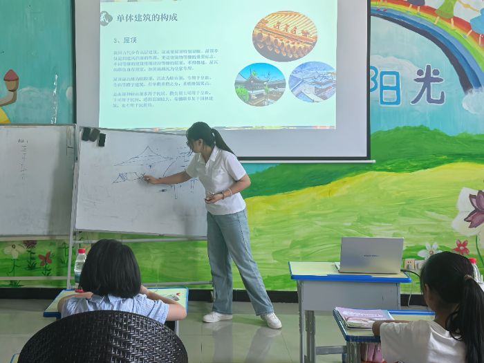 拓展學科視野,深化知識廣度。團隊成員陶嘉琳通過英語趣味課堂設計的小游戲,讓孩子們鞏固和拓展了英語單詞及其用法。在“中國典型地貌鑒賞”課程中,介紹了喀斯特地貌和河流地貌,并且圖文并茂,解釋了形成原因和典型特征,孩子們對地理有了一定的興趣。通過這兩堂生動的學科課程,不僅讓孩子們了解了相關知識點,更激發了他們對學習和探索的求知欲。