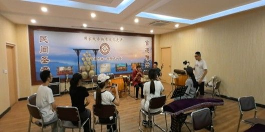 圖 2 嘉興大學(xué)平湖師范學(xué)院“紅韻”突圍實(shí)踐團(tuán)正在聆聽非遺器樂(lè)細(xì)十番 許諾菲攝