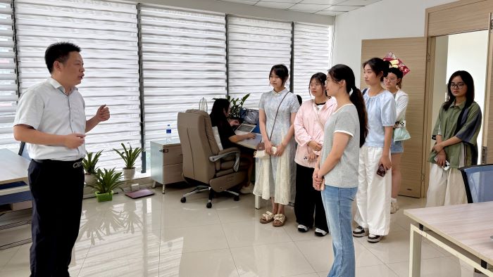 帶著對創新創業的熱情,實踐團成員和人才發展集團一同來到大學生創業園,共同參觀了創業園場地,了解入駐相關政策。創業大學為為有志青年提供不同類型的培訓課程,組織各類實踐活動并提供直播設備支持。在交流座談中,同學們提出大學生創業相關問題,創業大學劉毅校長強調:“創業應‘順勢而為’”,順應國家和當地的發展大勢頭,人才政策能幫我們降低啟動成本,但能不能活下去,還要看市場!”他建議同學們“先就業再創業”的真誠分享,讓大家明白積累資源、技術和人脈的重要性,更感受到這片“孵化土壤”對青春夢想的悉心滋養。