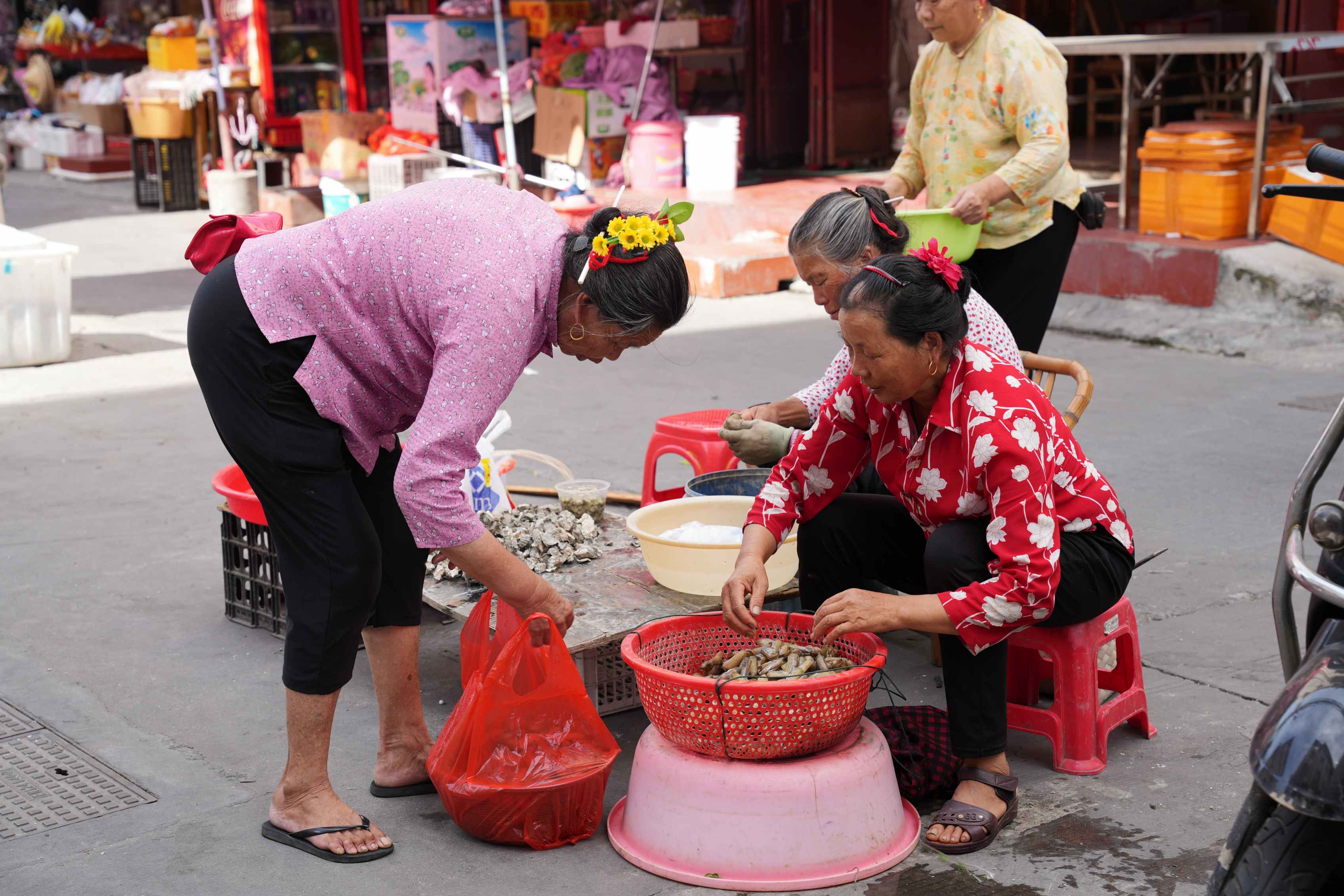 (圖為蟳蜅女在挑選新鮮的海蠣 林昕妍攝)
