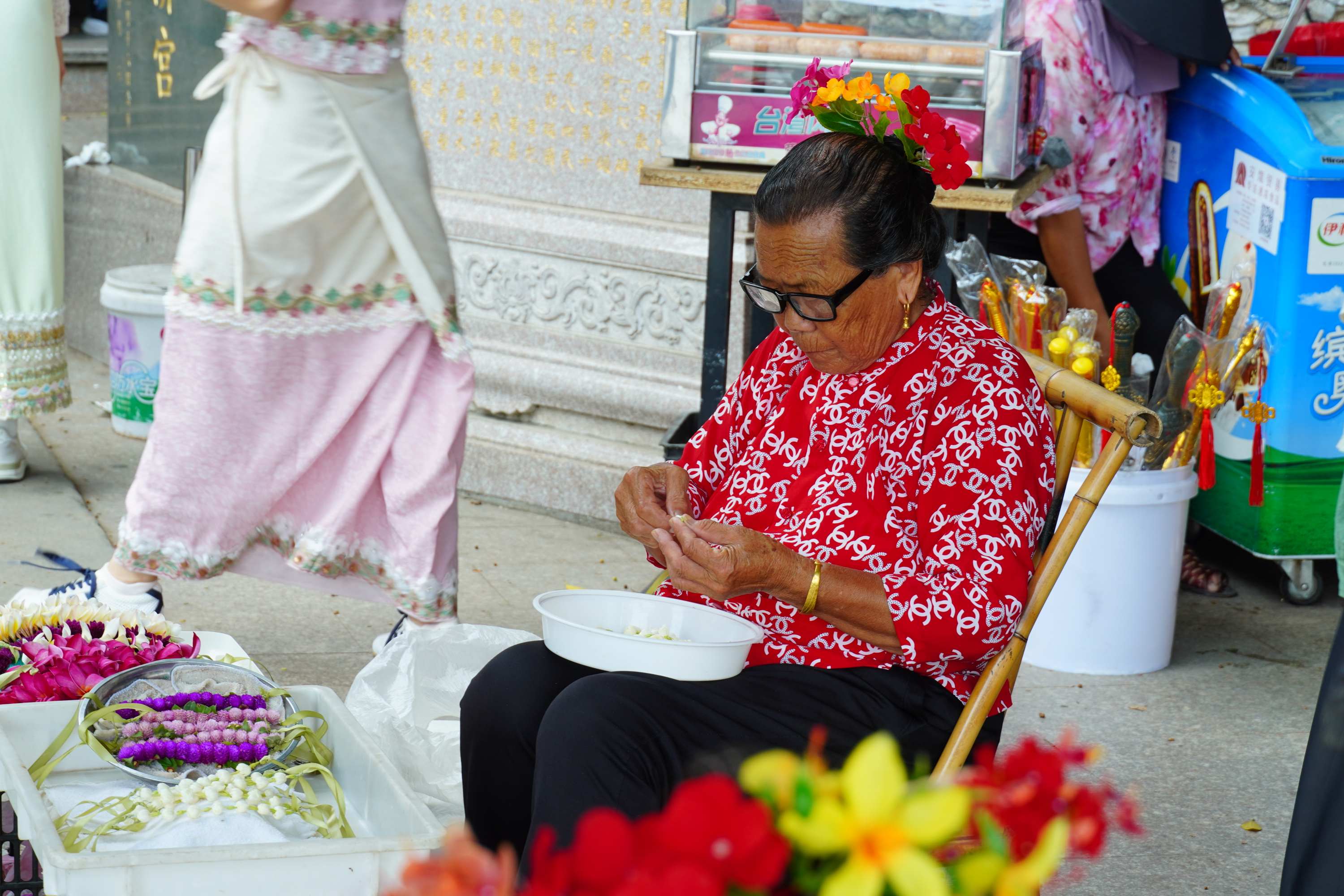 (圖為蟳埔女在制作傳統簪花 饒巧靈攝)
