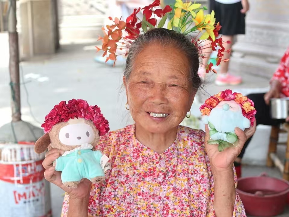 現場,一位資深的簪花圍技藝傳承人特意為實踐隊帶來的玩偶梳發簪花,指尖翻飛間,一朵朵時令鮮花在玩偶發間綻放,既展現了非遺技藝的鮮活傳承,也讓年輕一代近距離感受了傳統民俗的溫度。