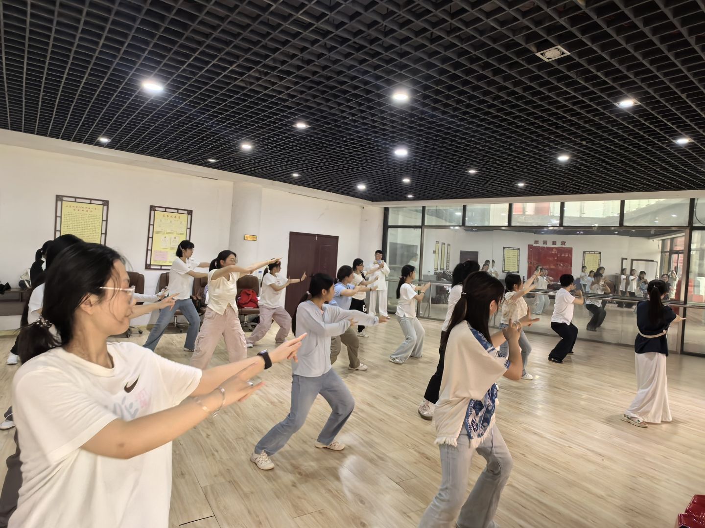 圖為團隊成員跟隨老師學習五禽戲的場景。通訊員劉靜雅攝