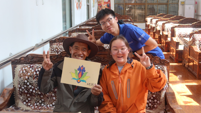 十指春風化雪蓮:文化薪火的深度交融 繩結的纏繞是文化傳承的紐帶,粘土的塑形是情感表達的窗口,剪紙的鏤空是匠心獨運的展現,繪畫的色彩是心靈世界的映照。這些手工技藝不僅是中華民族智慧的結晶,更是連接過去與現在、個人與集體的精神橋梁。團隊成員林虹余總結道:"我們帶來的不是技藝,而是觸發文化認同的開關。老人們捏的粘土玩偶、填色的圖騰、編織的繩結,都是中華文明多元一體最可愛的物證。"