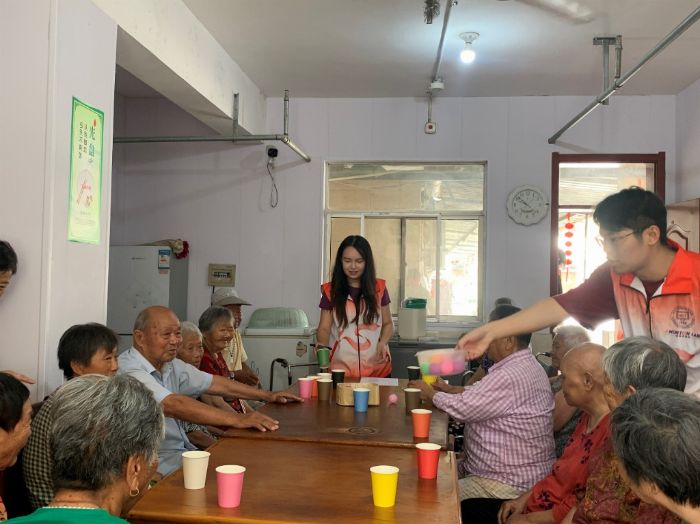 近日,在江蘇省淮安市清江浦區四季春老年公寓,淮陰工學院計算機與軟件工程學院“銀齡守護”健康助老志愿服務團隊、江蘇省淮安市清江浦區四季春老年公寓聯動組織了一場以"青春伴夕陽,溫情暖公寓"為主題的暑期社會實踐活動。此次活動包括健康宣講、趣味手勢操教學、詐騙案例演繹、全員團建游戲、非遺漆扇手作體驗以及老年人和管理人員訪談等,通過與老年人的深度互動,為他們送去關懷與溫暖,助力提升老年人的生活質量與幸福感。