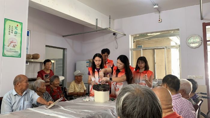 “歡樂互動”聚人心 在為增進老年人之間的交流與互動,營造輕松愉快的氛圍,活動設置了精彩的團建游戲。老年人通過抽簽分為兩隊,開展紙杯傳球分組PK挑戰。游戲中,大家全神貫注,在杯口朝下傳遞小球的過程中,展現出十足的默契,傳球時的謹慎配合、成功傳遞后的歡欣鼓舞,讓老人們在互動中收獲了滿滿的快樂,現場洋溢著歡聲笑語。游戲結束后,輸的團隊為大家獻上了一首大合唱,悠揚的歌聲回蕩在公寓里,進一步點燃了現場的歡樂氣氛,也讓老人們在歌聲中感受到了集體活動的溫暖與樂趣。