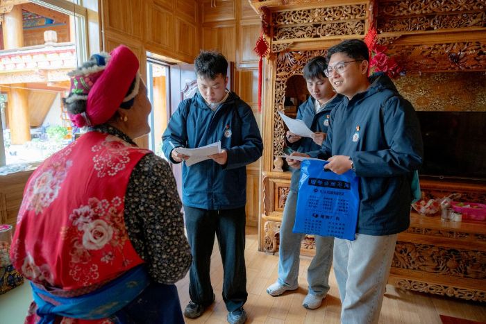“在云鏡牧歌的香格里拉,每一縷經幡飄動都訴說著故事。”團隊成員帶著調研問卷走訪與村民交流,一位藏族阿媽熱情邀請團隊們進屋參觀。