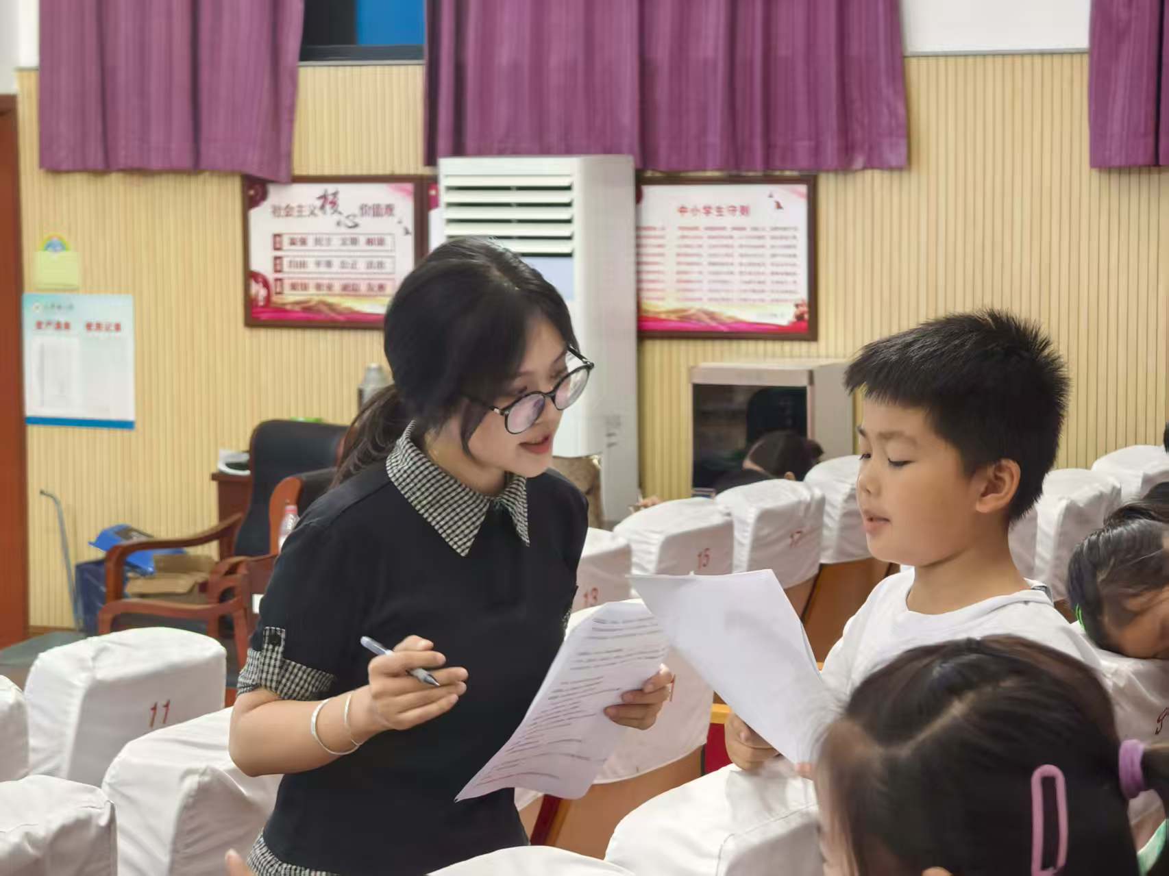 在大洋路小學,實踐團圍繞文本《閱看大洋,向善成長》開展指導活動。活動伊始,指導老師組織學生逐個展示朗誦片段,依據語音語調、情感表達等標準,選出各段落的朗誦者。隨后,實踐團成員針對選定學生的表現,從字音校準、節奏把控、情感融入等方面進行深入指導,通過逐句示范、對比講解等方式,幫助學生優化朗誦細節,提升整體呈現效果。
