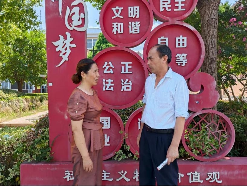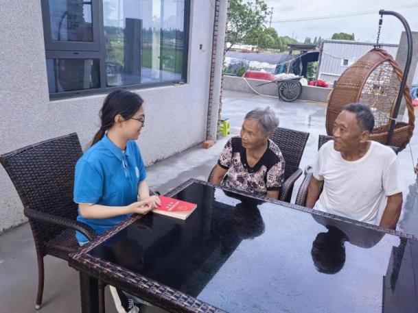 圖為成員依據民法典為老人解惑:“不動產的相鄰權利人應當按照有利生產、方便生活、團結互助、公平合理的原則,正確處理相鄰關系。”安安供圖