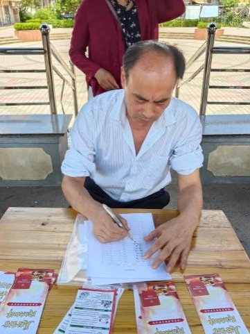 圖為成員發放法律知識手冊。毛藝冉供圖