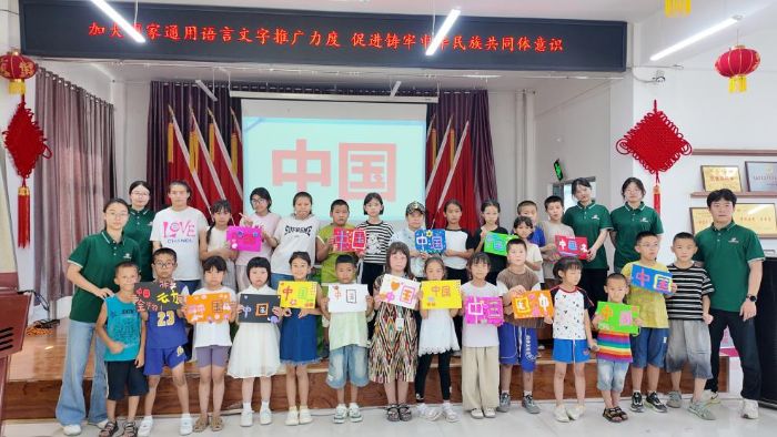 實(shí)踐團(tuán)還赴察布查爾錫伯自治縣納達(dá)齊牛錄鄉(xiāng)開(kāi)展推普活動(dòng)。在鄉(xiāng)村學(xué)校和托管點(diǎn),成員們通過(guò)詩(shī)詞誦讀、繞口令訓(xùn)練等形式與孩子們“同上一堂課”,并開(kāi)設(shè)“AI智能知多少”課堂,介紹智能語(yǔ)音技術(shù);在“指尖上的漢字”實(shí)踐課中,孩子們用彩泥感受漢字之美。在“小小翻譯官”協(xié)助下,成員們走訪調(diào)研普通話(huà)使用需求。作為推普活動(dòng)的重要環(huán)節(jié),“石榴籽同心共筑夢(mèng)·民族情攜手創(chuàng)未來(lái)”文藝晚會(huì)在納達(dá)齊牛錄鄉(xiāng)精彩上演。實(shí)踐團(tuán)與新疆師范大學(xué)師生同臺(tái),朗誦《籽籽同心,團(tuán)結(jié)花開(kāi)》,高歌《我愛(ài)你中國(guó)》,用藝術(shù)語(yǔ)言傳遞“五十六個(gè)民族一家親”的深厚情感。
