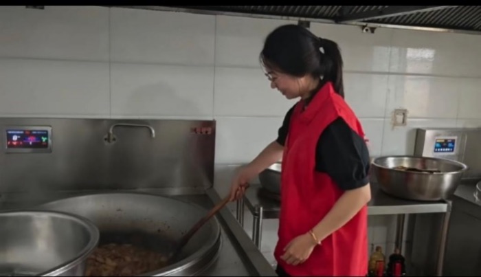 圖為團隊成員走進養老中心后廚志愿服務,在實踐中調研