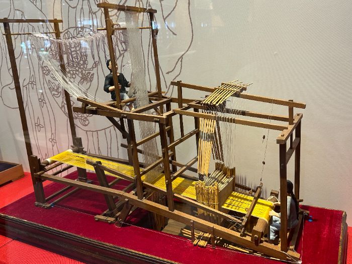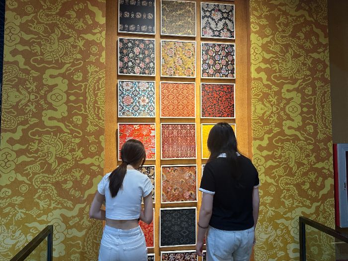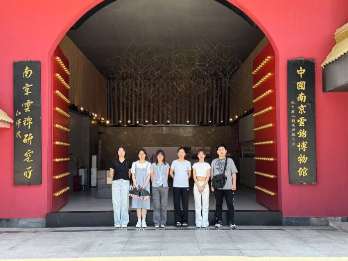 “先鋒隊”前往南京博物院和云錦博物館。在南京博物院,小隊成員重點參觀了歷史館、特展館,并且前往非遺館體驗傳統工藝,記錄展陳設計。除此以外,還在數字館進行了重點調研,驚嘆于虛擬展覽技術的運用。在云錦博物館,小隊成員參觀了織機演示、記錄云錦制作流程。
