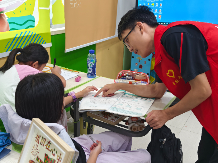 每周開班前,團隊成員與街道負責人及家長取得聯系,深入了解每個孩子的學習情況。輔導中不僅幫助孩子們高效完成暑假作業,更注重引導梳理知識框架,針對性傳授錯題整理、時間規劃、單詞記憶等學習方法。同時,開設專注力訓練、學習習慣養成小課堂,以趣味互動游戲培養高效學習能力。