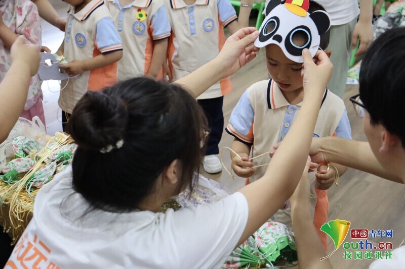 圖為志愿者與小朋友們一起制作香囊與小玩具。邢桂宇 供圖