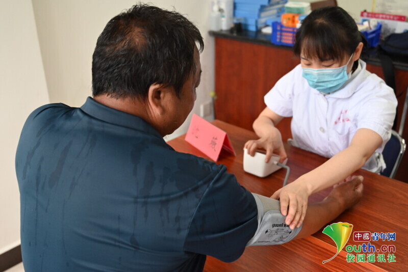 圖為志愿者在為村民們測量血壓。邢桂宇 供圖