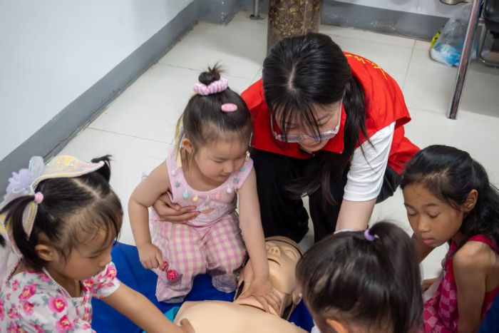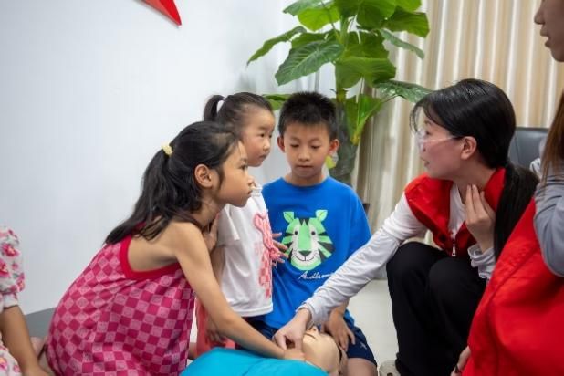 在兒童健康宣講環(huán)節(jié),團(tuán)隊(duì)精心設(shè)計(jì)了互動(dòng)式安全健康教育課程。通過情景模擬和實(shí)物演示的方式,重點(diǎn)向孩子們傳授了海姆立克急救法、心肺復(fù)蘇術(shù)和七步洗手法三項(xiàng)實(shí)用技能。講解海姆立克急救法時(shí),志愿者用生動(dòng)的"剪刀石頭布"口訣幫助孩子們快速記憶操作步驟;演示心肺復(fù)蘇術(shù)時(shí),借助模擬人教具分步講解,并配合節(jié)拍器讓孩子們掌握正確的按壓節(jié)奏;教授七步洗手法時(shí),采用"內(nèi)外夾弓大立腕"的趣味口訣,使孩子們直觀了解洗手的重要性。整個(gè)宣講過程氣氛活躍,孩子們積極參與角色扮演和實(shí)操練習(xí),在輕松愉快的氛圍中掌握了這些關(guān)乎生命安全的必備技能。