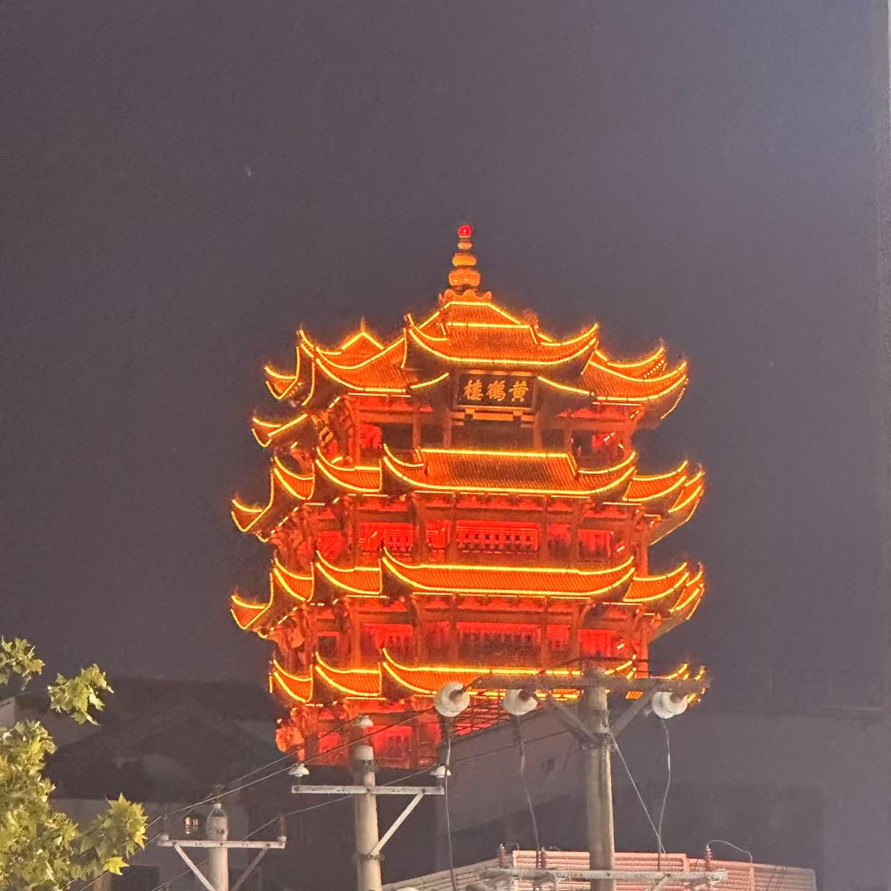| (圖為6月17日“星火湘?zhèn)?rdquo;實(shí)踐團(tuán)夜游武漢黃鶴樓。陳靜供圖) |