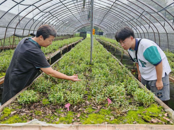 圖為余教授帶領團隊成員實地觀察石斛 朱雨軒供圖