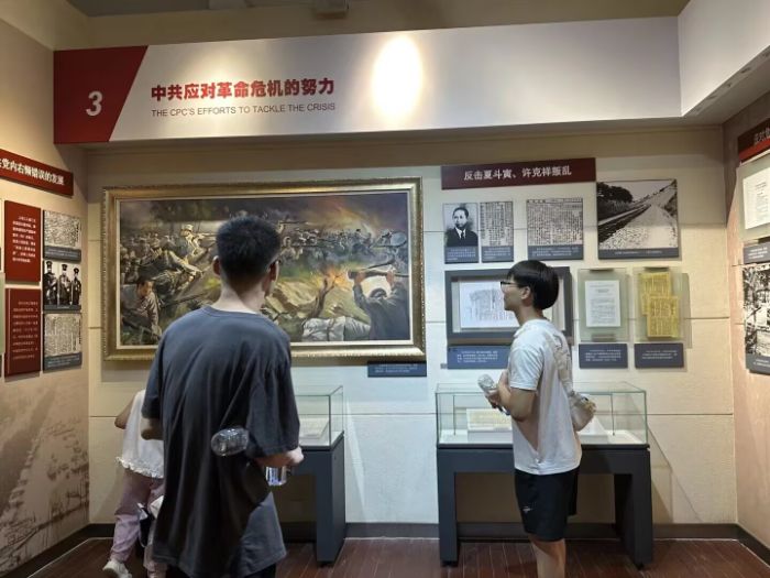 7月2日 武漢中共中央機關舊址紀念館:這座百年洋房見證了1927年黨歷史上的關鍵轉折。”隊員丁子涵說,“那份手抄的、筆跡有些潦草但內容極其重要的文件復印件,讓人仿佛聽到了歷史的呼吸。”