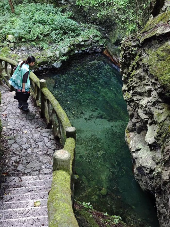 圖為實踐隊隊員進入森林腹地探查水質 黃雪穎供圖