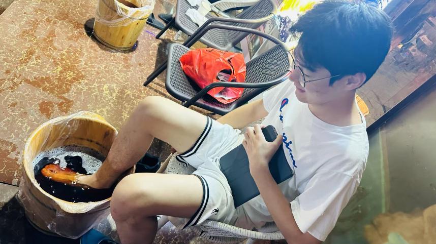 (圖為成員體驗瑤藥足浴 何煒供圖)