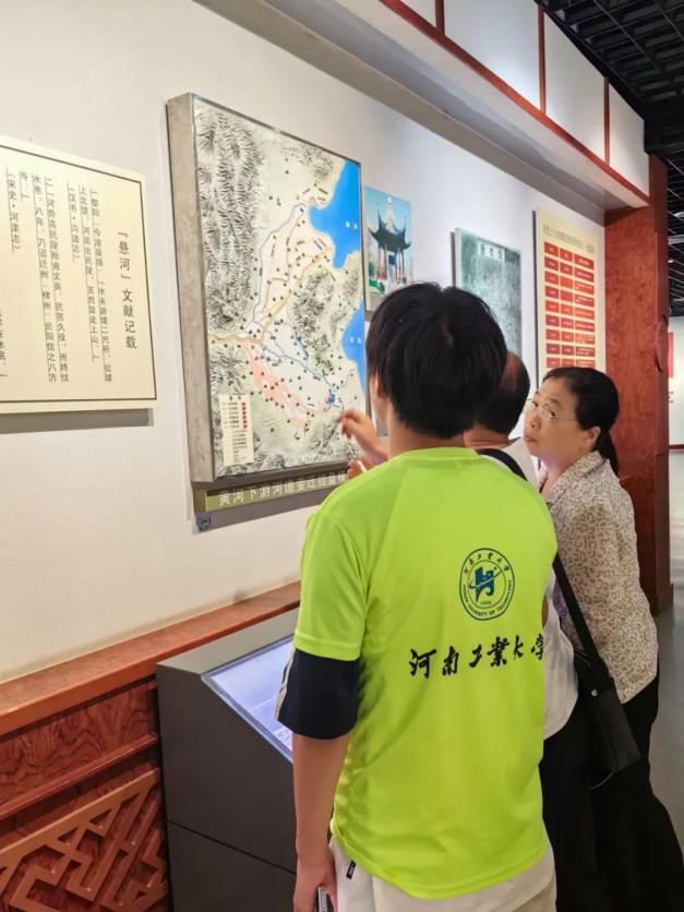 隨后,團隊前往鄭州市黃河博物館學習。在了解黃河博物館承載的文化與治理歷史后,團隊成員將電氣工程、智能控制等領域的核心概念融入博物館展陳講解,介紹 “綠色電力開發助力黃河生態系統可持續保護”“現代智能水利設施中電氣自動化與傳感技術應用” 等內容,吸引了大量游客駐足聆聽。團隊還設計并現場發放關于 “黃河流域環境保護協同推進與智能電網創新發展” 的專題調查問卷,收集社會各界意見和訴求,為后續研究與實踐提供參考。