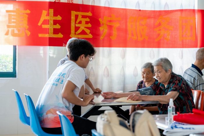 醫暖紅鄉,盡醫者職責 在深入汲取涇縣這片紅色熱土承載的歷史力量后,針對涇縣老齡化程度相對較高,且鄉鎮醫療資源相對匱乏地現狀,實踐團隊將目光投向當地突出的民生關切——老齡群體的健康保障。7月6日至7月7日,團隊成員分赴深山中的涇縣山莊托老所和涇縣社會福利中心開展“健康科普+基礎檢測”的專項服務。