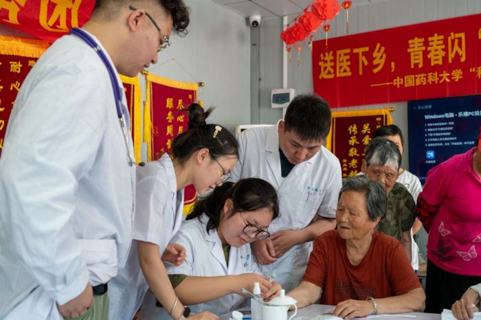 圖為實踐團隊成員在涇縣社會福利中心進行義診。(祝梓豪供圖)
