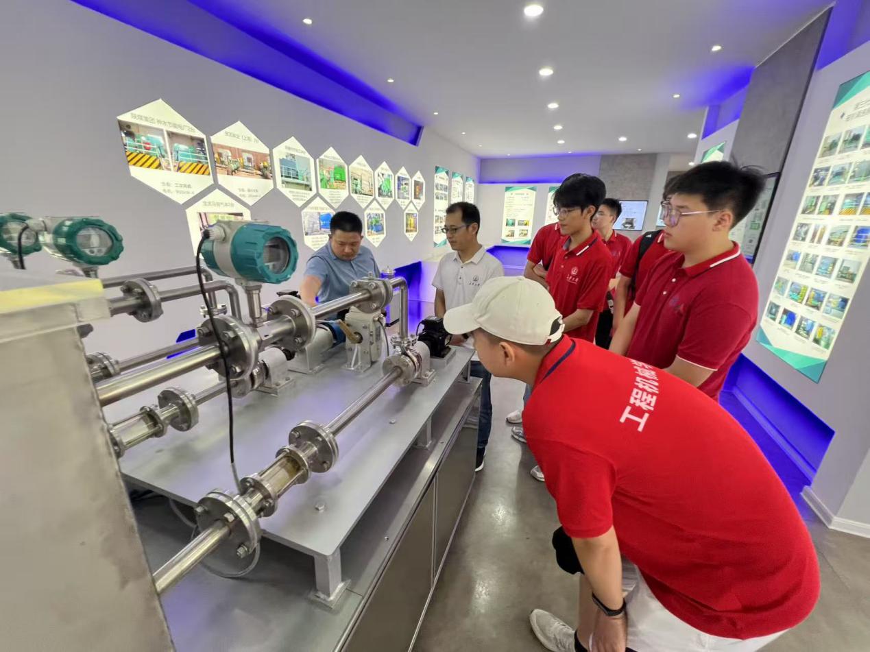 通過展廳詳實的資料和工作人員的深入講解,實踐隊系統梳理了磁輪聯軸器從初代到最新產品的迭代升級歷程,并通過豐富的應用案例分析,深刻感受到磁傳動技術的快速發展與廣闊前景。郭萬金老師現場進行了直連、二代、三代磁輪調速系統節能效果的對比演示,清晰展現了技術在能效提升上的顯著進步;永磁彈簧在電梯領域的模擬演示,則凸顯了磁技術在緩沖、減振方面的獨特優勢。這些高效節能、免維護、長壽命的特性,正是“翼臂協凈”項目在追求設備耐用性、降低運行成本方面亟需突破的關鍵點。 深入車間觀摩工作機器的實際應用,隊員們更體會到將創新技術轉化為可靠產品的嚴謹與不易。