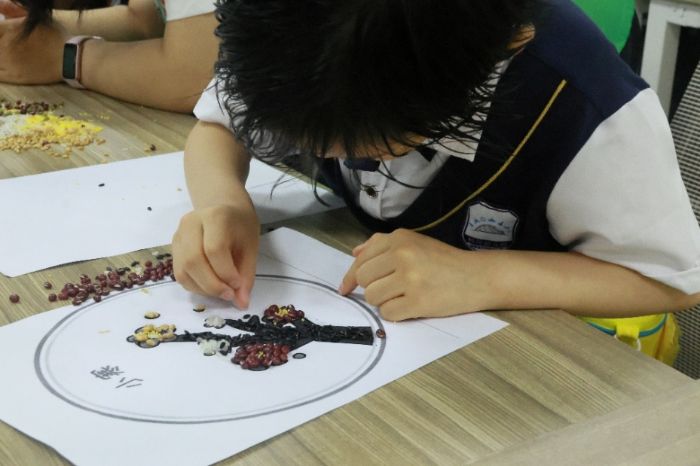 非遺里的文脈創新:讓傳統技藝在青春中傳承 知識科普過后,動手實踐環節將夏令營推向高潮。實踐團針對不同年齡段學子打造分層創作體系——面向10歲以下小朋友,傳授傳統糧食畫制作工藝,引導他們用小米鋪就“小滿麥浪”、用黑豆點畫“霜降冰棱”,將二十四節氣與中原農耕智慧融入指尖創作;針對10歲以上同學,則鼓勵他們運用AI技術設計糧食畫版卡通形象,讓傳統糧藝與現代數字技術深度融合。