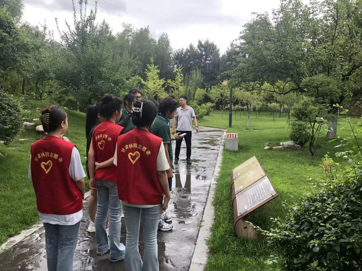 圖為團隊成員在志愿者的帶領下參觀甘肅林業職業技術大學。 尹延璐 攝