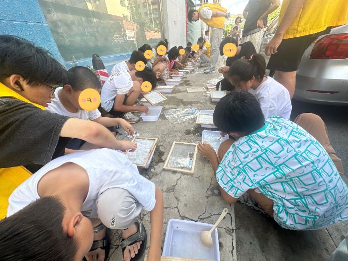 此次活動中,大學生志愿者們不僅是技藝的傳授者,更是孩子們的暖心伙伴。他們手把手教孩子們調(diào)整紙漿厚度,幫著整理沾濕的衣角,用鼓勵的眼神回應每一個天馬行空的想法。星光護童隊表示:看到孩子們?yōu)樽约鹤龅牡谝粡埣垰g呼時,感覺所有的準備都值得。能帶著他們感受傳統(tǒng)文化,同時陪伴他們成長,是很有意義的經(jīng)歷。”公益成長營的老師也表示:“這些大學生志愿者用青春活力感染著孩子們,讓他們在學習非遺技藝的同時,感受到來自社會的關(guān)愛。這樣的活動,不僅豐富了孩子們的暑期生活,更在他們心里播下了自信與熱愛的種子。”