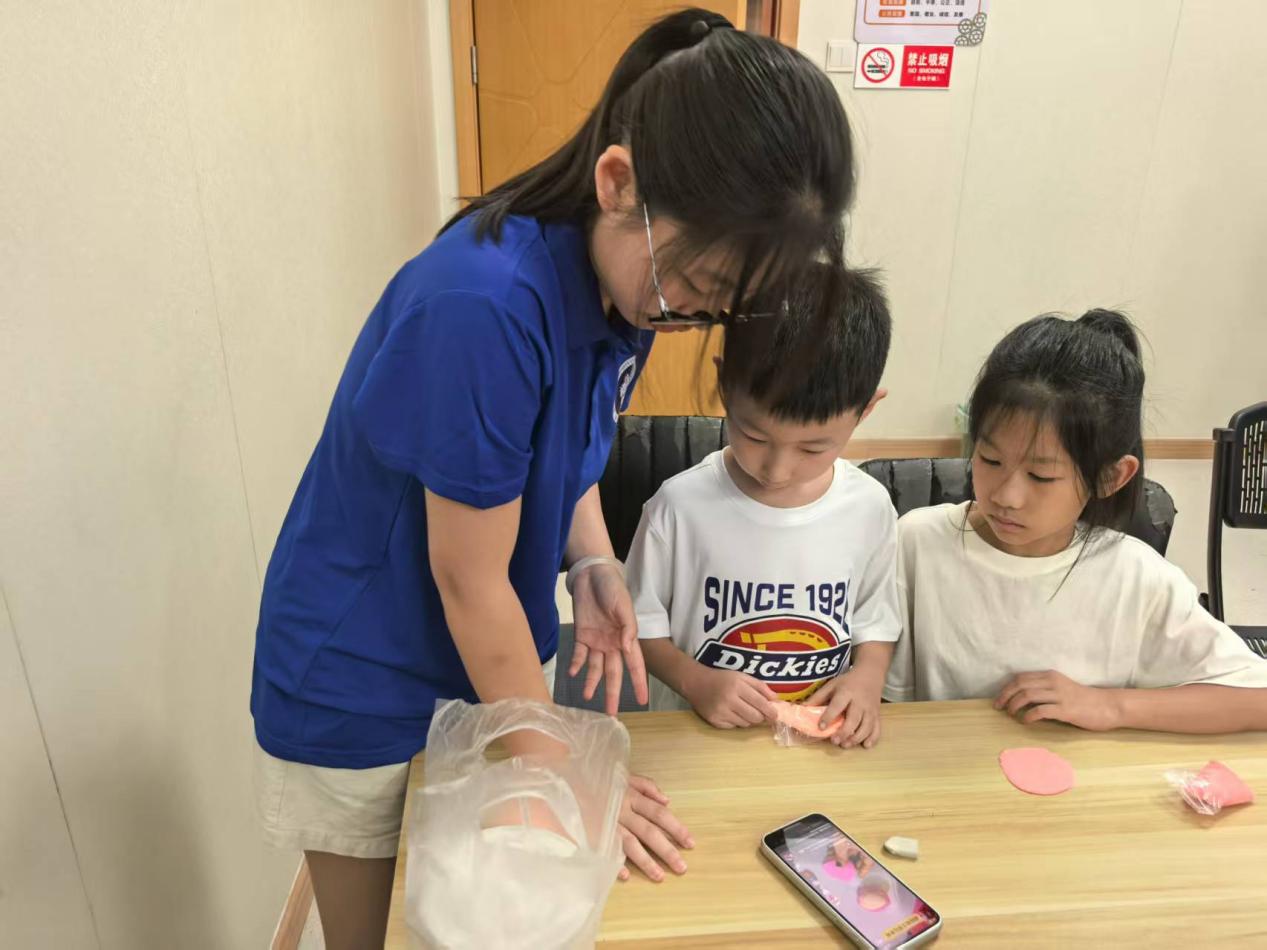圖為宣講團(tuán)成員帶領(lǐng)孩子們做手工。多彩大學(xué)生通訊員孫佳倫供圖
