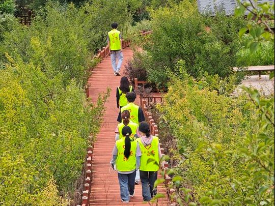 在交流中,團(tuán)隊(duì)了解到梅博園正探索“果梅+文旅”融合發(fā)展路徑,打造依托梅博園景觀打造鄉(xiāng)村旅游項(xiàng)目。實(shí)踐團(tuán)成員結(jié)合“文化與產(chǎn)業(yè)融合,創(chuàng)新農(nóng)旅模式”的實(shí)踐方向,提出將農(nóng)事體驗(yàn)、民俗展示與果梅觀光結(jié)合的具體思路,為農(nóng)旅模式創(chuàng)新提供了新視角。