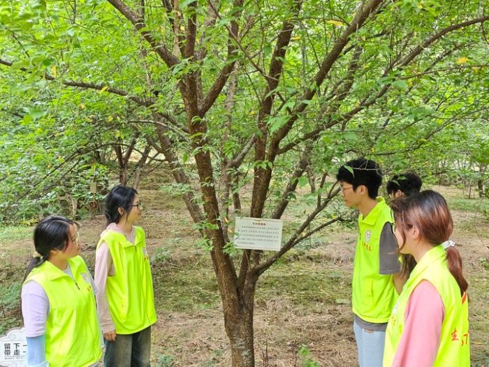 2025年8月16日下午,實(shí)踐團(tuán)一行首先深入梅博園核心種植區(qū),沿著蜿蜒的田間步道細(xì)致考察果梅生長(zhǎng)態(tài)勢(shì)。針對(duì)當(dāng)?shù)毓返闹髟云贩N、種植歷史、年產(chǎn)量及銷(xiāo)售渠道等產(chǎn)業(yè)發(fā)展的關(guān)鍵問(wèn)題,團(tuán)隊(duì)成員一邊記錄果梅主栽品種、年產(chǎn)量、銷(xiāo)售渠道等關(guān)鍵信息,一邊與管理人員交流意見(jiàn),逐一梳理果梅在種植、管理、銷(xiāo)售等環(huán)節(jié)的現(xiàn)狀與痛點(diǎn)。