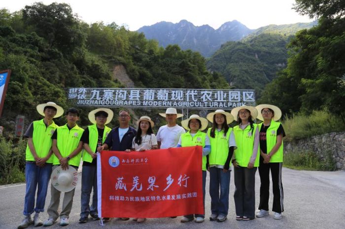 2025年8月17日上午,西南科技大學“藏羌果鄉行”實踐團走進九寨溝縣葡萄現代農業園區,在基地負責人張洪的帶領下,深入了解葡萄產業從種植到釀造的全流程。團隊先后參觀釀酒區與釀酒葡萄種植區,與從業者深入交流,圍繞葡萄酒生產發酵工藝、葡萄種植技術等關鍵議題展開探討,為園區產業升級出謀劃策。