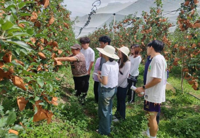 實踐團首先從“視覺識別”入手,建議為新品種設計專屬包裝,突出品種名稱、培育背景及生態種植特點,通過包裝的差異化視覺符號,讓消費者在選購時能快速區分;其次,聚焦“體驗感知”,策劃“果園開放日”活動,組織消費者現場采摘品嘗,對比新品種與紅富士在甜度、果肉細膩度上的差異,用直觀口感打破“外形相似即品質相同”的認知誤區;此外,建議依托新媒體傳播優勢,果農拍攝新品種培育全過程的溯源短視頻,生動展現人工除草、有機施肥等生態種植細節,讓消費者理解高價背后的品質支撐與匠心付出。