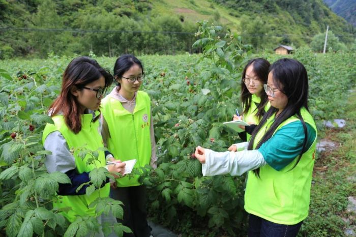 2025年8月18日下午,藏羌果鄉行實踐團走進松潘縣黃龍鄉三舍驛村,探訪當地樹莓產業,圍繞樹莓特性、種植管理、加工及銷銷售問題與農戶深入交流,為果農探尋產業發展良策。
