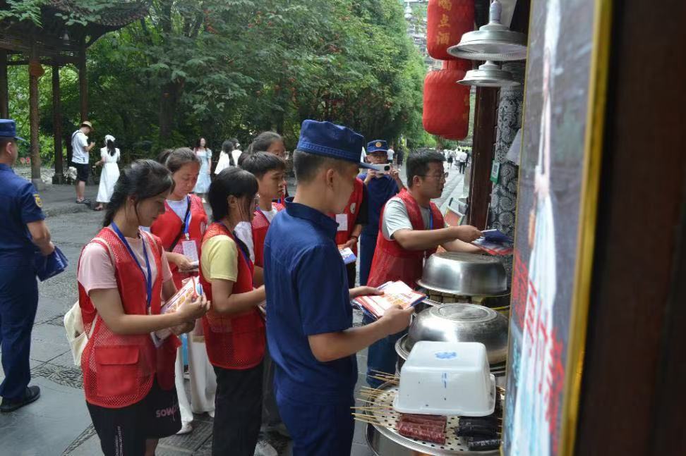 8月19日,實踐團在西江千戶苗寨開展“安全宣傳+環保行動”志愿服務。消防站副站長王豪帶領成員走街串巷普及防火知識,同學們用雙語(漢語+苗語)講解“三清三關”口訣,將“人
